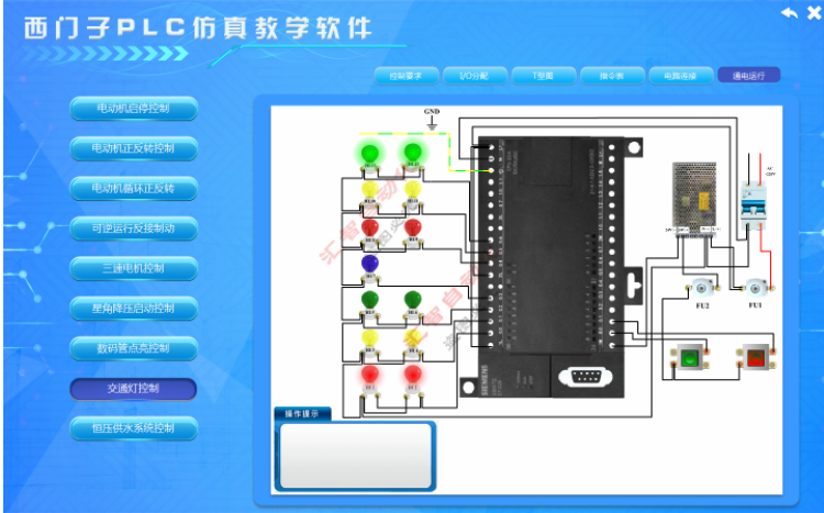 一、基本指令:電動機啟停控制、電動機正反轉控制、電動機循環(huán)正反轉、可逆運行反接制動、三速電機控制、星角降壓啟動控制、數(shù)碼管點亮控制、交通燈控制、恒壓供水系統(tǒng)控制九項。
