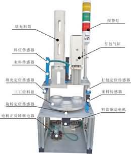 主要由井式供料單元、三工位旋轉(zhuǎn)工作臺(tái)、平面軸承、沖壓裝配單元、光電傳感器磁性開關(guān)(歐姆龍)、電磁閥、電機(jī)及驅(qū)動(dòng)器、支架、機(jī)械零部件構(gòu)成。 |