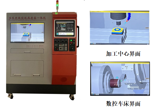 為了解決以上因素我公司研發(fā)了新一代多系統(tǒng)數(shù)控機床虛實一體訓練機,該設(shè)備軟件與硬件相結(jié)合,具有編程、加工和調(diào)試系統(tǒng)的功能,可以實現(xiàn)數(shù)控車床、數(shù)控加工中心的仿真操作,可手動編程或輸入CAD/CAM程序進行模擬加工。高度仿真的軟件數(shù)控系統(tǒng)界面與真實的數(shù)控系統(tǒng)相同,配備真實的操作面板與手輪,讓學生在學習過程中能體會到真實數(shù)控機床一致的操作體驗,為下一步操作真實機床打好基礎(chǔ)而特別設(shè)計。