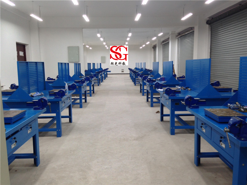 ·鉗工實驗室(一張桌4座/組)每組詳細(xì)配置如下:可以完成常用工具的認(rèn)識和使用,錘、鋸、銼、鑿、劃線、裝配、調(diào)試、安裝、維修等教學(xué)工具。