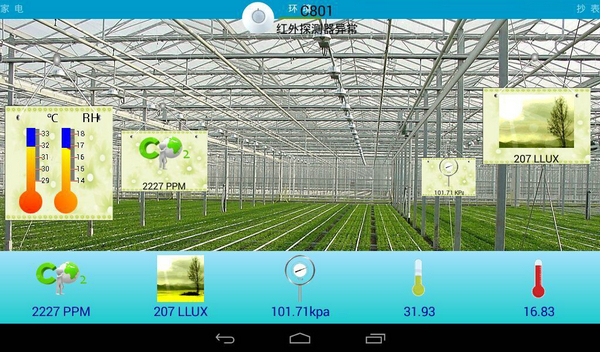 3、環(huán)境檢測(cè)系統(tǒng):通過二氧化碳傳感器、大氣壓力傳感器、光照強(qiáng)度傳感器、溫濕度傳感器,配合智能網(wǎng)關(guān)環(huán)境檢測(cè)系統(tǒng)軟件,實(shí)現(xiàn)農(nóng)業(yè)大棚環(huán)境檢測(cè)系統(tǒng)等物聯(lián)網(wǎng)綜合應(yīng)用系統(tǒng)。