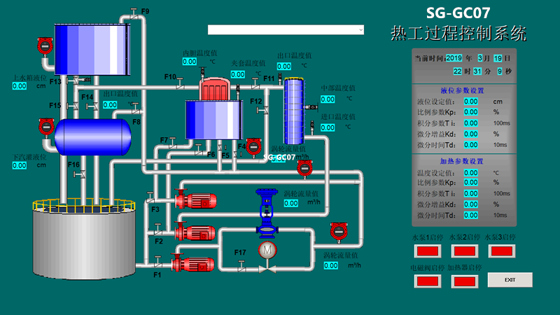 系統(tǒng)除了改變調(diào)節(jié)器的設(shè)定值作階躍擾動外,還可在對象中通過電磁閥和手操作閥制造各種擾動