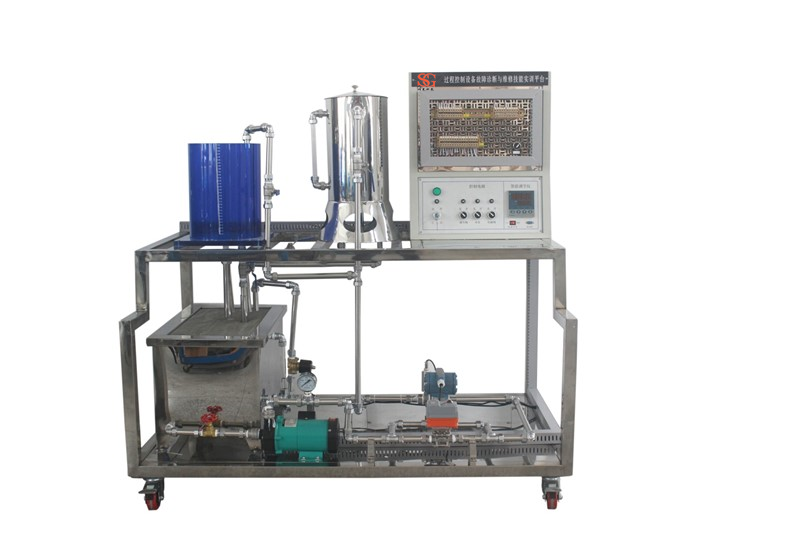 通過該實訓裝置的使用和學習,學生能夠掌握有關過程儀表的測量及自動化儀表的安裝、測量及使用,過程控制設備故障診斷與維修技能實訓平臺由被控對象(不銹鋼框架)和控制系統(tǒng)(網(wǎng)孔板)組成。被控對象包含支力系統(tǒng)、水箱、儲水箱、壓力變送器、渦輪流量計、變壓變送器、Pt100和K分度熱電偶、電動調節(jié)閥、電磁閥、管路及閥門等;控制系統(tǒng)包含不銹鋼網(wǎng)孔板、故障設置箱、開關電源、單相調壓模塊、K型熱電偶、漏電保護器、智能儀表及接線線端子排等。
