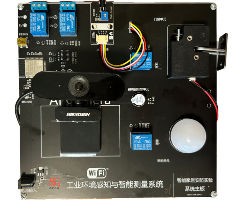 (5)智能家居模塊:智能家居安防系統(tǒng)是安防系統(tǒng)的控制軟件,用來收集系統(tǒng)內(nèi)部各傳感器的數(shù)據(jù)和視頻圖像,并通過遠程的方式控制各設(shè)備的動作。 配置火焰?zhèn)鞲衅、光照傳感器、煙霧傳感器、可燃氣體傳感器、人臉識別傳感器、自動門鎖,蜂鳴器報警設(shè)備等。