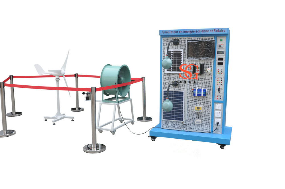 風光互補發(fā)電實訓系統(tǒng)主要由光源模擬控制系統(tǒng)、模擬風場系統(tǒng),風力發(fā)電機,風速、風向檢測裝置,風光互補充放電管理系統(tǒng)、離網(wǎng)逆變與負載系統(tǒng)。
