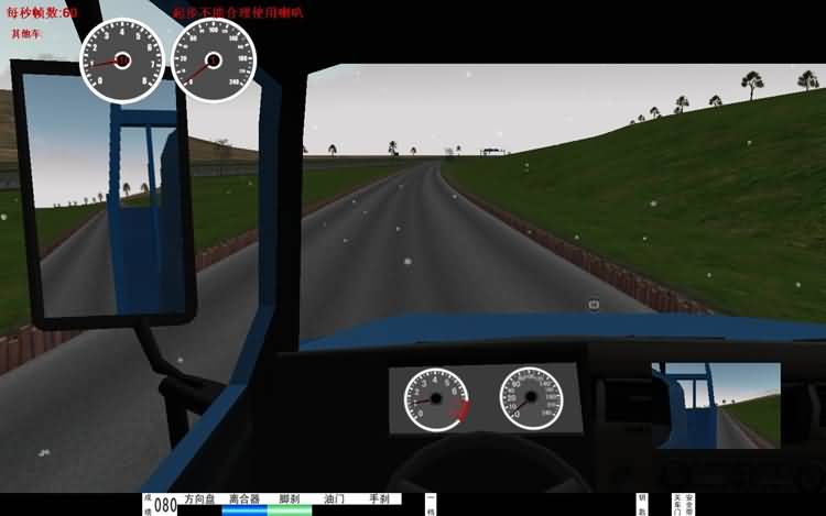 ※界面顯示新增加:80度全新視角寬頻模擬駕駛、轉(zhuǎn)向、油門、剎車、離合器深淺進(jìn)度顯示;檔位、訓(xùn)練成績(jī),后視鏡(左、右、中)、場(chǎng)景地圖顯示;與硬件配合。