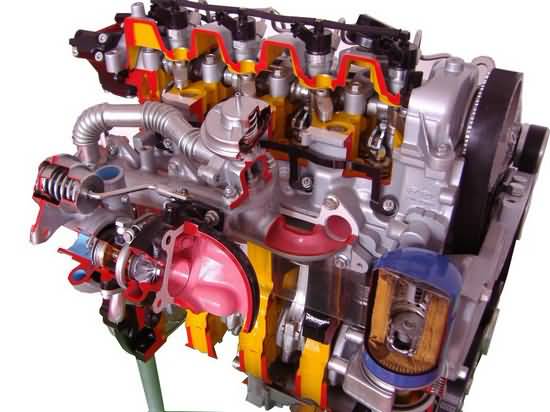 用原廠發(fā)動機和手動變速器進行剖面處理,全面展示發(fā)動機曲軸連桿機構(gòu)、配氣機構(gòu)、潤滑機構(gòu)、冷卻系統(tǒng)、進排氣系統(tǒng),變速箱離合器、齒輪變速傳動系統(tǒng)、換檔操縱系統(tǒng)的內(nèi)部結(jié)構(gòu)。