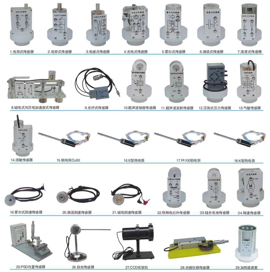 2、傳感器:傳感器外殼采用進(jìn)口透明有機(jī)玻璃與硬聚氯制做,內(nèi)部裝置各種精密傳感器,透明直觀。每個(gè)獨(dú)立傳感器上印有原理圖與接線(xiàn)口,方便實(shí)驗(yàn),而且老師可以帶到課堂上講課用。