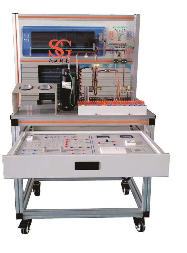 1.該裝置集制冷空調系統(tǒng)安裝、制冷系統(tǒng)電接線、壓力檢漏、抽真空、 充注制冷劑與運行調試于一體,包含了制冷系統(tǒng)維修的全部步驟,能滿足實訓教學、實際工程 訓練及職業(yè)技能競賽的需要。