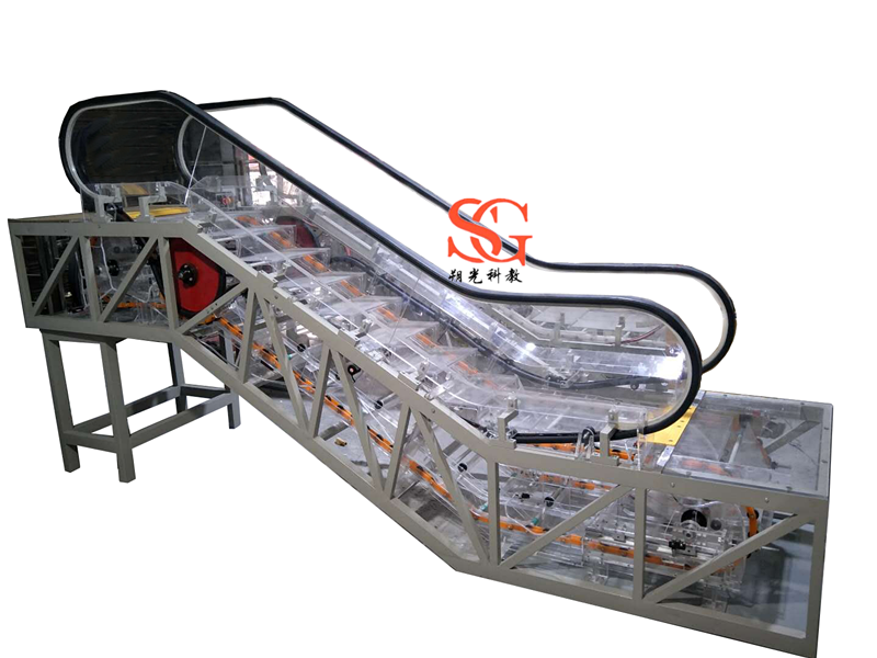 透明教學(xué)自動扶梯模型,適用于職業(yè)院校、中職院校電梯技術(shù)專業(yè)學(xué)員進行自動扶梯梯級拆裝、操縱和維修保養(yǎng)實訓(xùn)教學(xué)訓(xùn)練。扶梯模擬實訓(xùn)裝置采用優(yōu)質(zhì)方管焊接密紋噴塑組裝成扶梯桁架,梯級踏板系統(tǒng)、扶手帶系統(tǒng)、曳引機系統(tǒng),設(shè)備臺架、安全檢測系統(tǒng),電氣控制控制系統(tǒng)等。