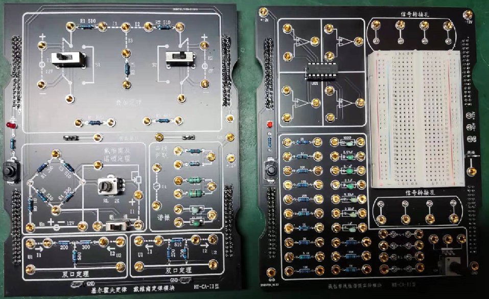 2、實驗設計型。電路在設計上即滿足驗證實驗的需要,同時也把開放型的電路設計好,加入開放型芯片管座、面包板、信號轉(zhuǎn)接、元件庫等,可方便學生動手搭建電路和測試。