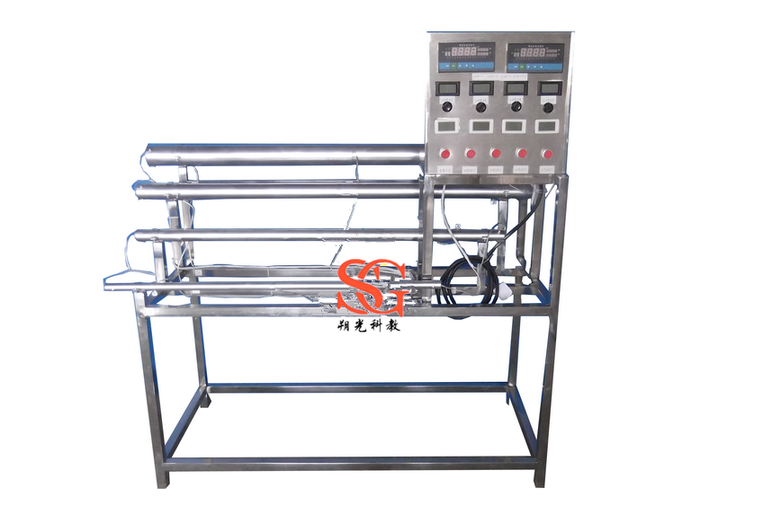 不同長度和直徑的電鍍紫銅管四根,管內(nèi)設(shè)置加熱器,固態(tài)調(diào)壓模塊無極調(diào)節(jié)加熱,測溫傳感器,電功率測試數(shù)顯儀表,萬能信號輸入巡檢儀顯示溫度,各管配有溫度控制儀表,不銹鋼臺架及控制屏等。