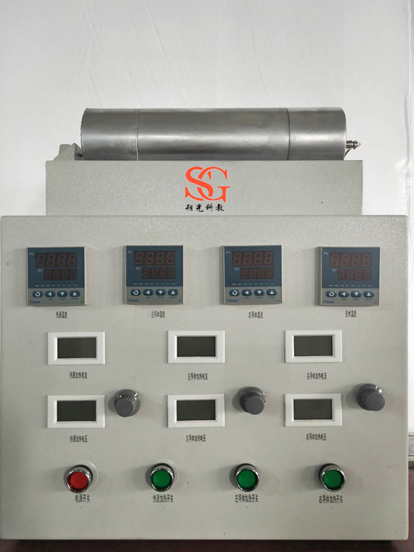 2、加熱器功率:3組×200W ,加熱溫度:≤100℃。 通過(guò)對(duì)三組加熱器電壓的調(diào)整使熱源、傳導(dǎo)體的測(cè)溫點(diǎn)恒定在一定溫度,然后測(cè)量輻射后的溫度。