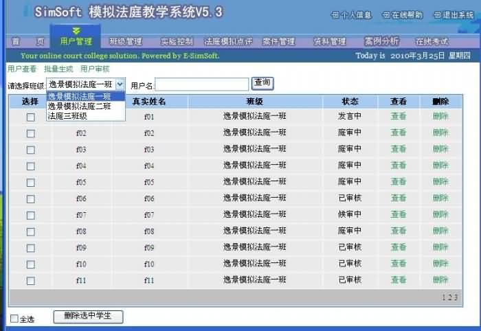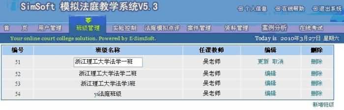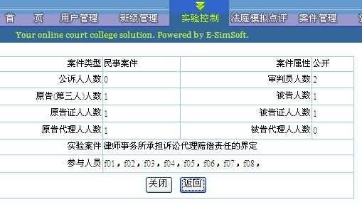 【首頁】、【用戶管理】、【班級(jí)管理】、【實(shí)驗(yàn)控制】、【法庭模擬點(diǎn)評(píng)】 、【案件管理】、【資料管理】、【案例分析】