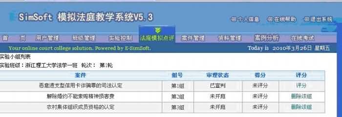 法庭模擬點(diǎn)評(píng):每一小組的案件審理結(jié)束后,老師案件的審理記錄進(jìn)行查看,并給每位扮演者評(píng)分,給每個(gè)小組一個(gè)組評(píng)分,并給出小組評(píng)論。