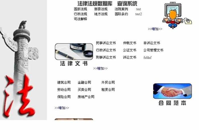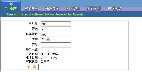 【用戶管理】、【模擬法庭】、【審理過程】、【相關(guān)資料】、
