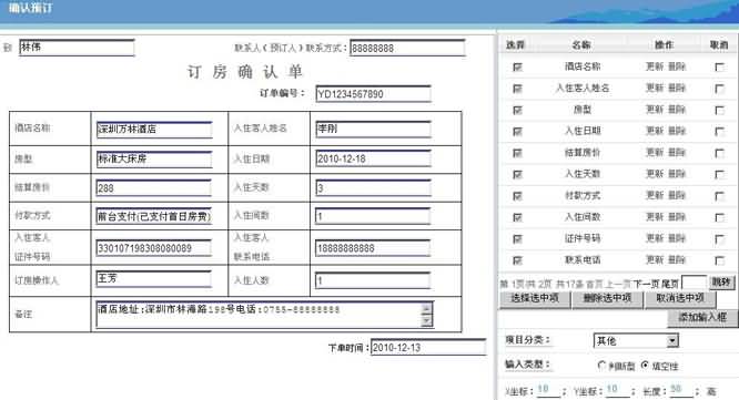 3. 此處我們以操作一張理“客房預(yù)訂單”為例來進行舉例,首先,需要點擊右上方“酒店預(yù)訂單”左側(cè)的紅色邊框按鈕,此時,系統(tǒng)會自動讀入相關(guān)單據(jù)。如下圖所示: