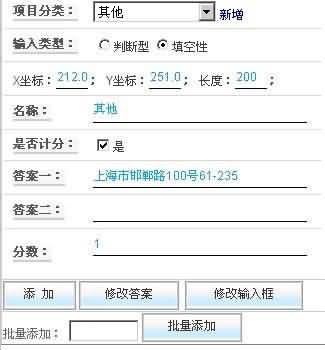 13. 在此設(shè)置界面中,所有的輸入框的位置,長度,輸入框內(nèi)容都可以由用戶自由編輯,且此處輸入的輸入框內(nèi)容及為此輸入框的正確答案,學生在學生端填入的信息,可以自動與此答案進行對比,從而達到自動批改的內(nèi)容。如需要增加新的對話框,可點擊右側(cè)的添加按鈕,如需要修改以前的對話框,可以在右上方找到所需要編輯的對話框,并點擊編輯,進行修改。同理,如需刪除,則點擊刪除按鈕。如下圖所示:
