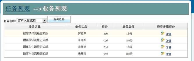 3. 如需要查看此學生某個任務(wù)的詳細得分及得分依據(jù),可點擊此任務(wù)所在行右側(cè)的“業(yè)務(wù)列表”,并點擊“詳情”,此時系統(tǒng)會列出此任務(wù)的詳細步驟及學生在此實驗中的所有步驟的分別得分。如下圖所示: