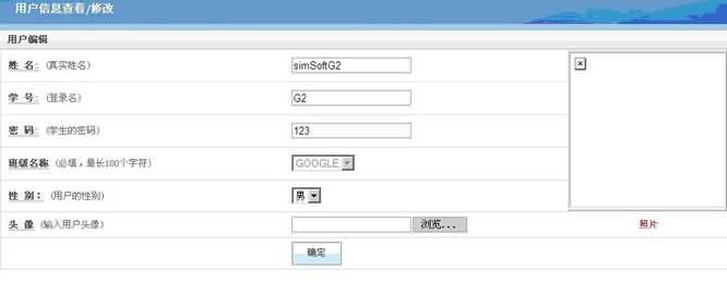 1. 登錄實驗后,學生可以維護自己的個人信息,點擊右上角的“個人信息”按鈕,在彈出框中輸入自己的個人信息,如有需要,可以上傳自己的照片,完成后點擊確定。如下圖所示: