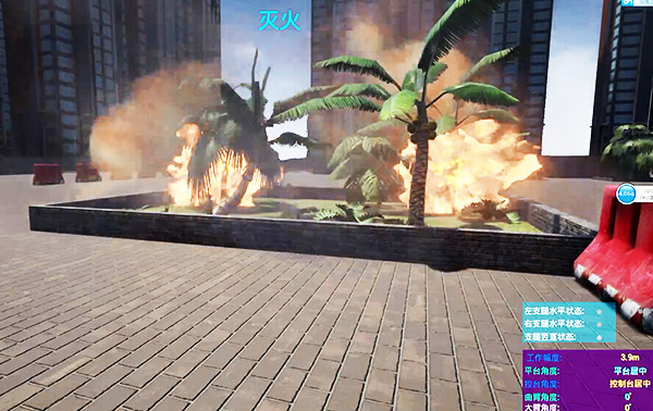 舉高消防車模擬仿真培訓系統(tǒng)采用先進的虛擬仿真軟件通過模擬仿真登高平臺消防車的機械結構、原理演示、操作運行動作,運用多屏立體顯示系統(tǒng)進行真實的顯示,以真實機械的操作方式對虛擬機械進行實時控制,把真實的操縱設備與虛擬機械和虛擬場景以及仿真的火場救援現(xiàn)場等場景相連接,使操作人員可以在本教學系統(tǒng)中真實的體會到實際操作消防車的感覺,達到高效虛擬教學的目的。