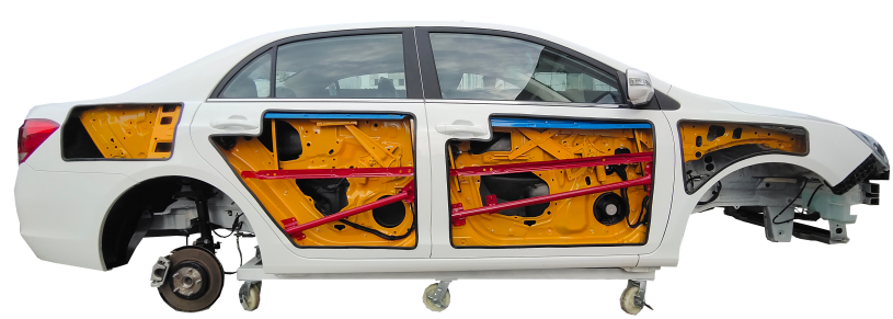 2.車身采用局部切割,不破壞車身結(jié)構(gòu),清晰展示碰撞傳感器,電動車窗升降系統(tǒng)等內(nèi)部結(jié)構(gòu);切割部位含前引擎蓋,左前翼子板,左前車門,左后車門,左后翼子板,前保險杠,后保險杠。